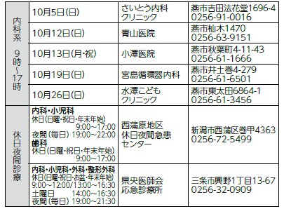 くらし 休日当番医 19/25 前の記事 次の記事 発行日 : 2025年09月25日 自治体名 : 新潟県弥彦村 広報紙名 : 広報やひこ 令和7年10月号 ※都合により変更になる場合があります。 問合せ:弥彦消防署 【電話】0256-94-3152 Tweet シェアする INFORMATION ~役場から(2)~ 夜間の急な病気等の相談