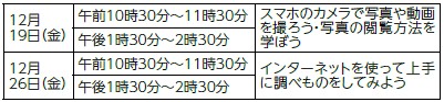(12月休館日:2日・5~18日・23日・24日・29~31日)