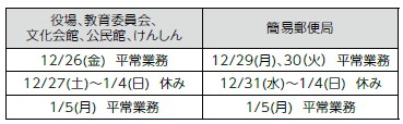 ■年末年始の役場窓口等施設について