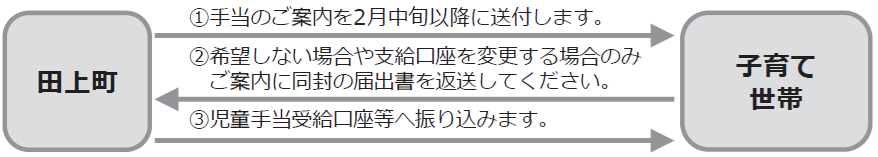 9月分(令和7年9月に出生した児童については10月分)の児童手当を支給した市町村から振り込まれます。そのため、田上町における支給対象者には該当しません。ご不明な点があれば、役場保健福祉課もしくは転入前の市町村にお問い合わせください。