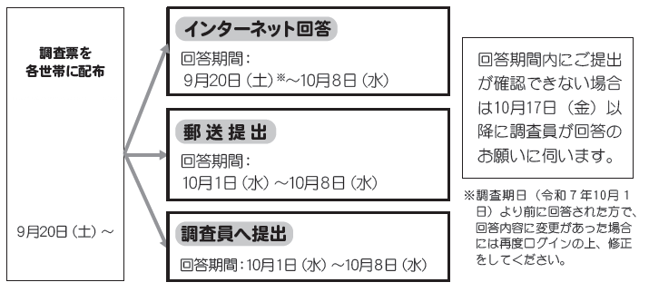 9月20日頃から国勢調査員が皆さまの世帯をお伺いし、調査票を配布します。