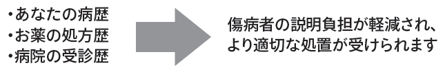 マイナ救急とは、救急隊員が傷病者のマイナ保険証(健康保険証として利用登録したマイナンバーカード)をカードリーダーで読み取り、傷病者の医療情報等を閲覧する仕組みです。傷病者の説明負担が軽減されるとともに、より適切な処置が受けられます。