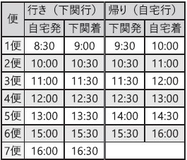 ※運休日…土日・祝日・年末年始(12/29~1/3)