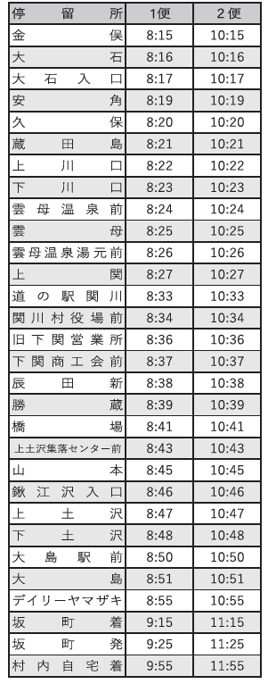 村内便と坂町便があり、坂町便は、今年度から予約不要の定時便を追加しました。