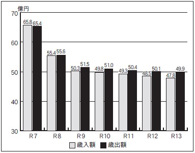 村では、持続可能な財政運営に向けて、毎年財政シミュレーションを作成しています。