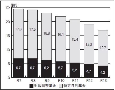 令和9年度以降は大幅な赤字となり、毎年1億円を超える財源不足が発生します。しかし実際は、収支が赤字とならないよう基金を取り崩して対応しますし、様々な交付金を活用するなど財源の確保に努めます。