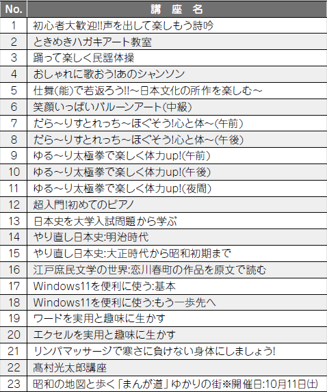 ※詳しくはたかおか学遊塾ホームページ、生涯学習センター内のチラシをご覧ください。