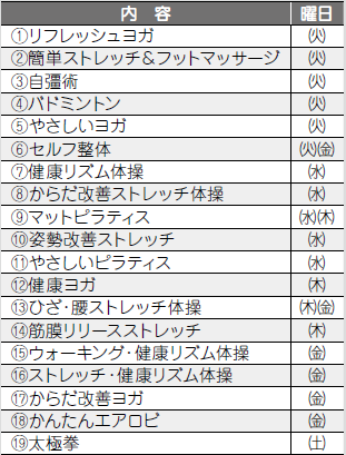 ※各教室の日時・定員・受講料などは、ホームページまたは施設のパンフレットでご確認ください。