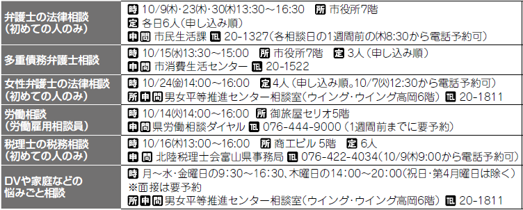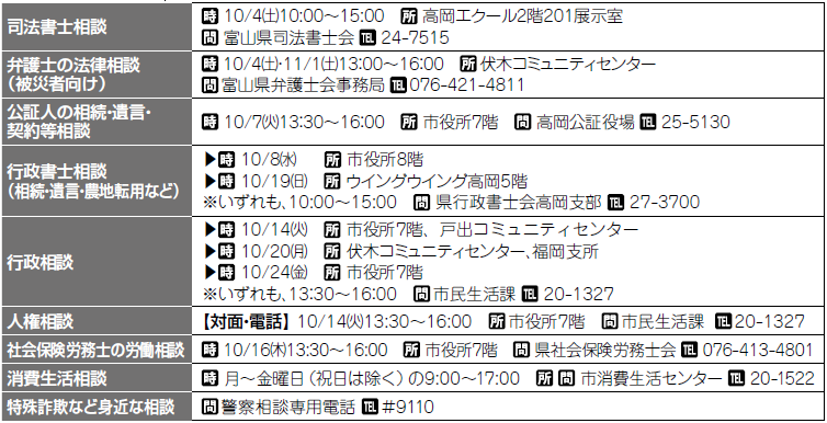 くらし 無料相談窓口 15/39 前の記事 次の記事 発行日 : 2025年10月01日 自治体名 : 富山県高岡市 広報紙名 : たかおか市民と市政 2025年10月号No.240 ■予約が必要な相談 ■予約が不要な相談 Tweet シェアする くらしの豆知識 information お知らせ【暮らし】(2)