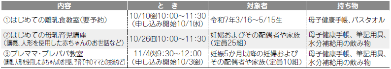 場所:(1)(3)保健センター (2)ふれあい福祉センター