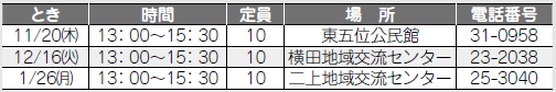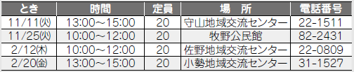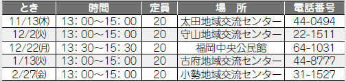 申込:募集時期などについては、直接、開催場所へお問い合わせください。