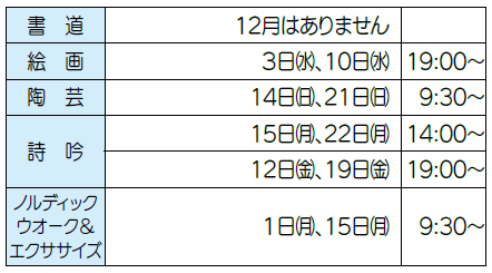 ところ:東地区公民館(陶芸は「陶芸の館」、ノルディックウオークandエクササイズは「総合体育センター」)