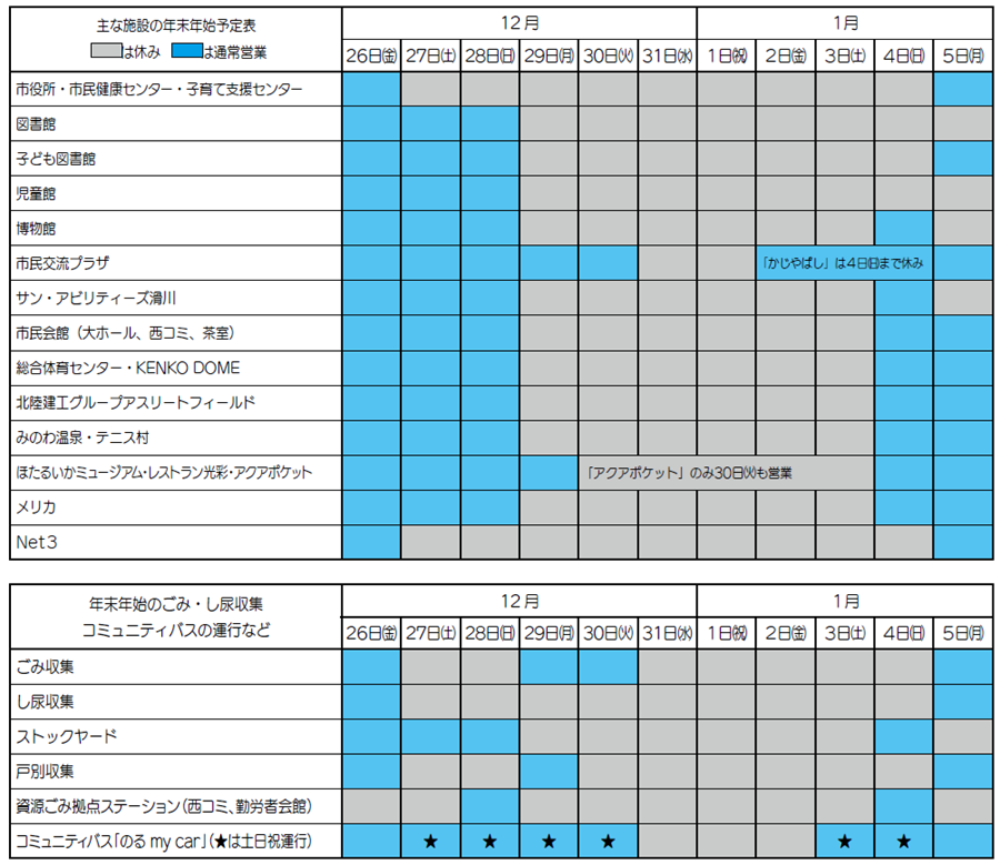 くらし 主な施設の年末年始予定表 30/33 前の記事 次の記事 発行日 : 2025年12月01日 自治体名 : 富山県滑川市 広報紙名 : 広報なめりかわ 2025年12月号 Tweet シェアする まちのうごき 食育コーナー