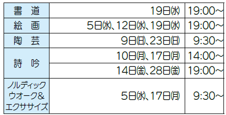 内容:書道・絵画・陶芸教室の作品を展示します。