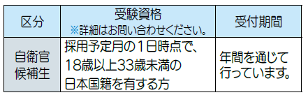 ※試験日など詳しくは、自衛隊富山地方協力本部HPをご覧ください