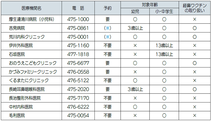 ※経鼻ワクチンのみ要予約、皮下注射ワクチンは予約不要。