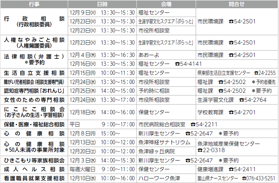 くらし 〔無料相談〕12月1日(月)~1月5日(月) 35/43 前の記事 次の記事 発行日 : 2025年12月01日 自治体名 : 富山県黒部市 広報紙名 : 広報くろべ 2025年12月号 Tweet シェアする 〔Information〕美術館 まちのできごと