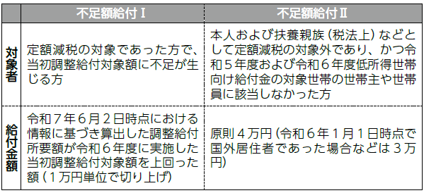 令和6年度に実施した「定額減税しきれないと見込まれる方への給付金(当初調整給付)」において、確定申告等で給付対象額に不足のあることが判明した方等へ不足分(不足額給付金)を給付します。