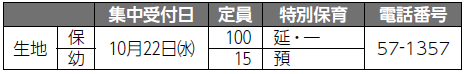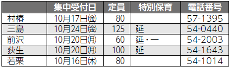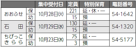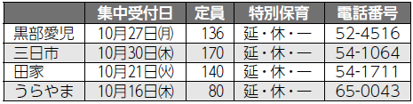 *集中受付日に都合が悪い場合は、10月14日(火)~31日(金)の間に第1希望の施設や市役所こども支援課または宇奈月サービスセンターにお子さんと同伴でお申込みください。