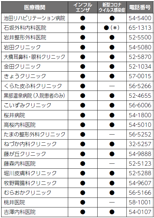 *予約が必要な場合がありますので、事前に医療機関にお問合せください。