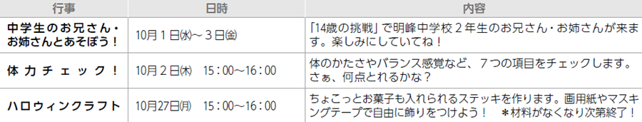 問合せ:ほがらか子育て支援センター くろべ市民交流センター「あおーよ」3階