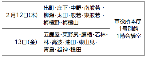 受付場所:混雑緩和のため地区ごとの受付日を設定しています。目安として、可能な範囲でご協力お願いします。
