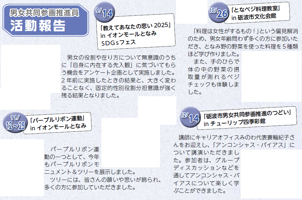 くらし ささえあい 26/35 前の記事 次の記事 発行日 : 2026年01月25日 自治体名 : 富山県砺波市 広報紙名 : 広報となみ 令和8年2月号 Tweet シェアする 各種案内 【花と緑と文化の財団】砺波市文化会館