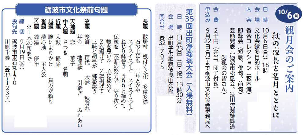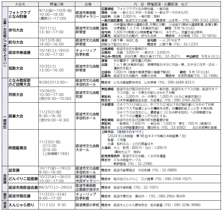 イベント 文化となみ第180号(令和7年9月号)(2) 27/37 前の記事 次の記事 発行日 : 2025年08月25日 自治体名 : 富山県砺波市 広報紙名 : 広報となみ 令和7年9月号 Tweet シェアする 文化となみ第180号(令和7年9月号)(1) 【花と緑と文化の財団】砺波市文化会館