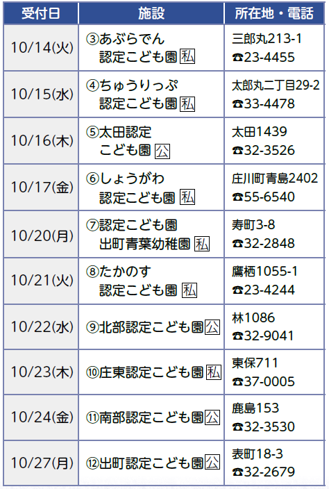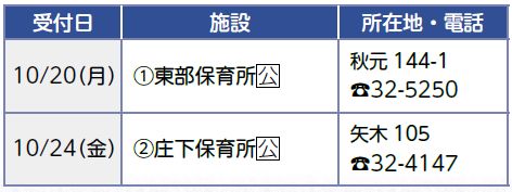 ※10月1日のみ、こども課ではなく市役所第6会議室(1号別館1階)