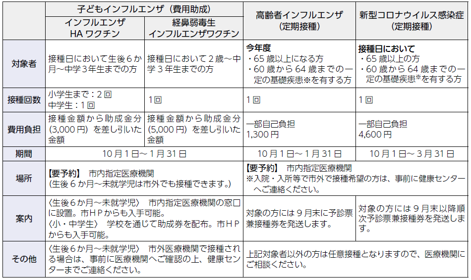 ※基礎疾患…心臓、腎臓、呼吸器の機能に障害があり、身の回りの生活が極度に制限される方、ヒト免疫不全ウイルス(HIV) による免疫の機能に障害があり、日常生活がほとんど不可能な方