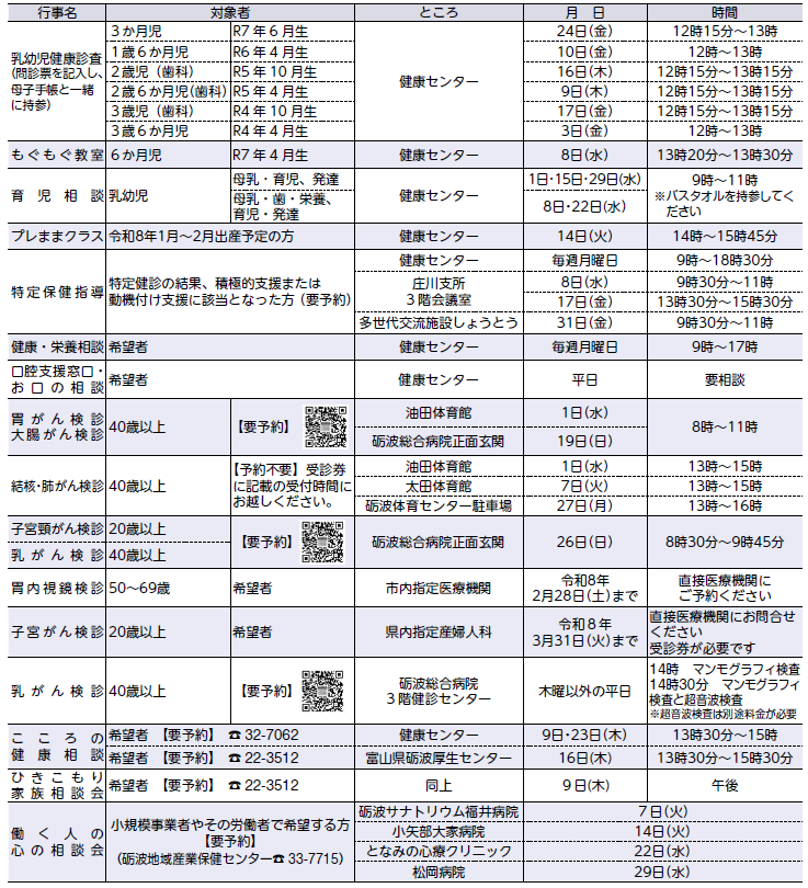 都合により健診日を翌月に延期したい場合は、本紙P.20記載のQRコードか電話でご連絡ください。