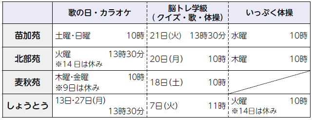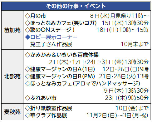 〈多世代交流施設利用時間8時30分~17時(苗加苑・北部苑の入浴時間は10時~16時です)〉