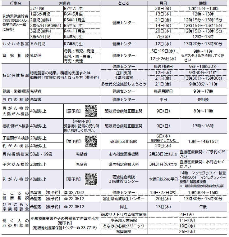 都合により健診日を翌月に延期したい場合は、本紙P.22記載のQRコードか電話でご連絡ください。