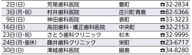 ※都合により変更になることがありますので、受診前に電話で要確認(受診の際は保険証が必要)