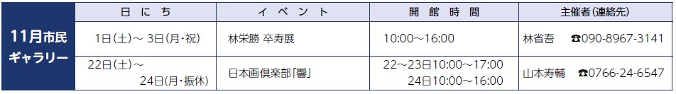 休館日:11/4(火)、5(水)、10(月)~14(金)