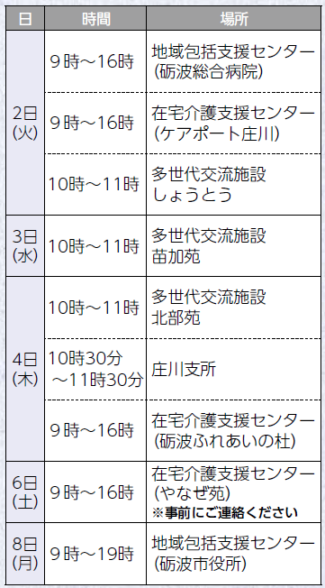 市内9か所で認知症相談日を設けています。物忘れや認知症に関して、ご本人やご家族等、どなたでも相談してください。相談日以外の日時でもご相談に応じます。