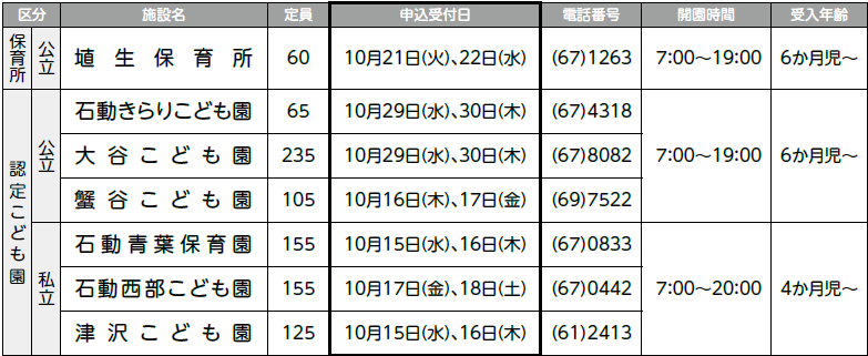 ※水島保育所は、令和7年度末で閉所するため、令和8年度の入所募集を行いません。