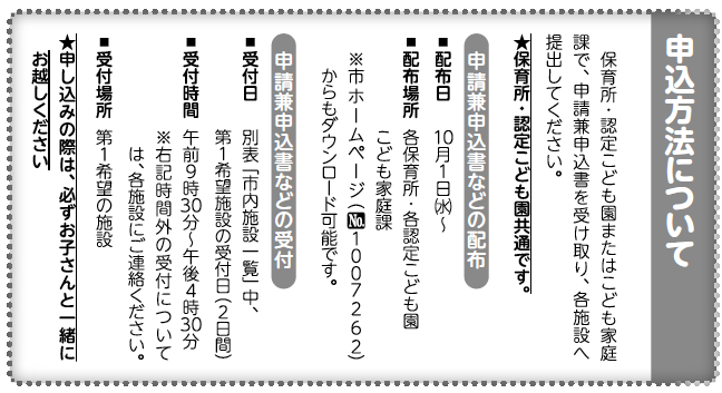 ★他市町村の保育所・認定こども園に入園を希望される人は、こども家庭課へお問い合わせください。