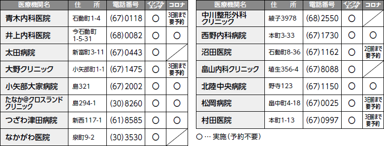 接種を希望される人は、下記の市内協力医療機関で接種してください。