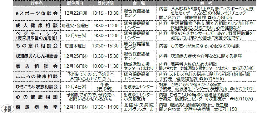 申し込み・問い合わせ:健康福祉課