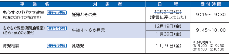 ※乳幼児健康診査、むし歯予防教室は個別通知しています。
