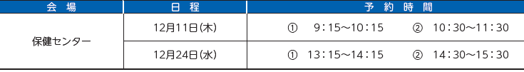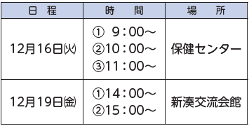 予約方法:インターネット または 電話(保健センター【電話】52-7070)