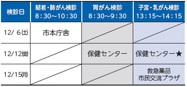 ◆医療機関検診(胃・大腸・子宮・乳がん検診)は12月20日(土)まで!