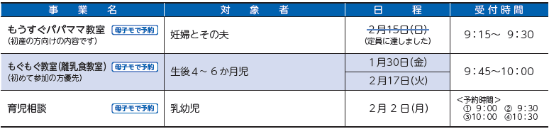 ●教室・育児相談の日程