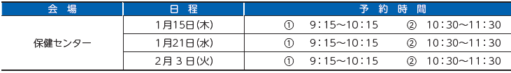予約方法:インターネットまたは電話(保健センター【電話】52-7070)