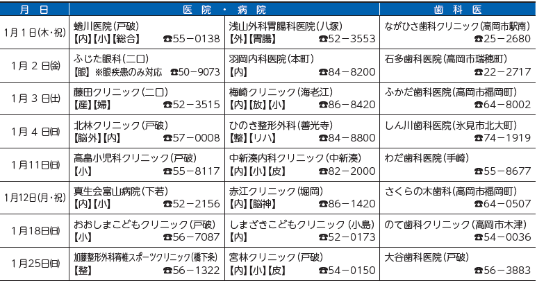●休日在宅当番医・歯科医