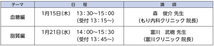 専門医から、糖尿病や脂質異常症の原因や対策について無料で学ぶチャンス!