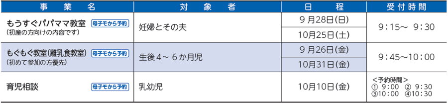 ■教室・育児相談の日程
