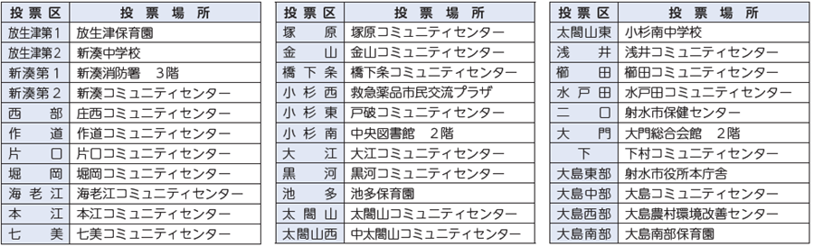投票当日(11月16日)は、市内33か所の決められた投票所(入場券に記載してある投票所)のみで投票できます。