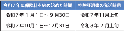 なお、令和7年10月1日~12月31日に、今年初めて保険料を納付された方へは、令和8年2月上旬に送付されます。